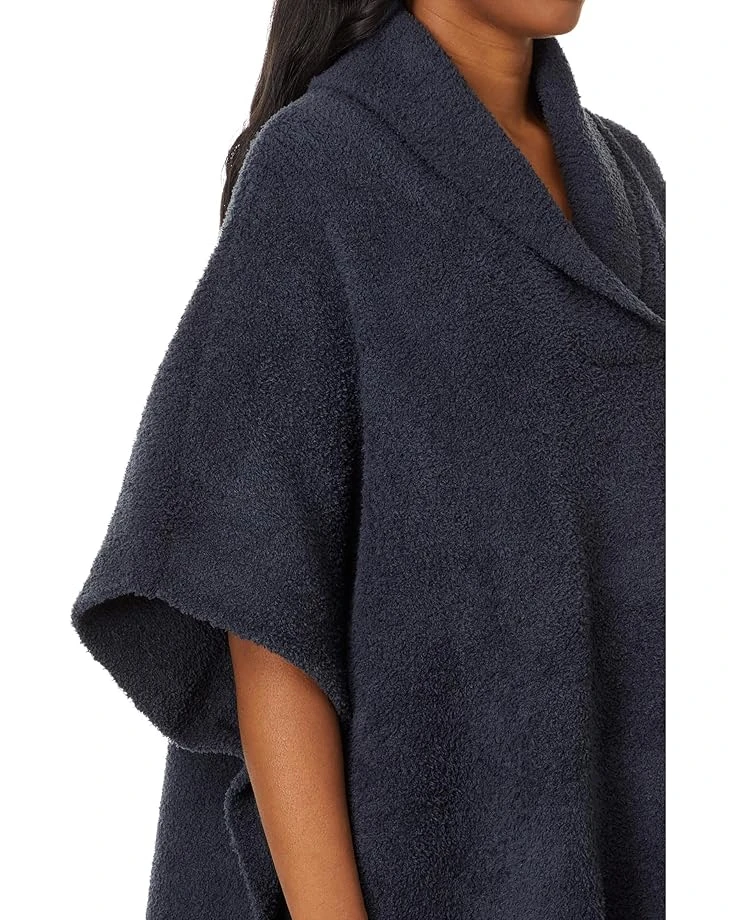 - Barefoot Dreams® CozyChic® Shawl Collar Poncho! Crafted from our luxurious CozyChic® fabric, this piece wraps you in irresistible softness, ensuring warmth without sacrificing style. Featuring long dolman sleeves and a regular fit, it provides a flattering silhouette that effortlessly drapes over any outfit. The open front and cozy shawl collar offer versatile styling options, while the elegant chevron stitch adds a chic touch. Perfect for layering, this poncho is your go-to companion for casual outings or cozy nights in.