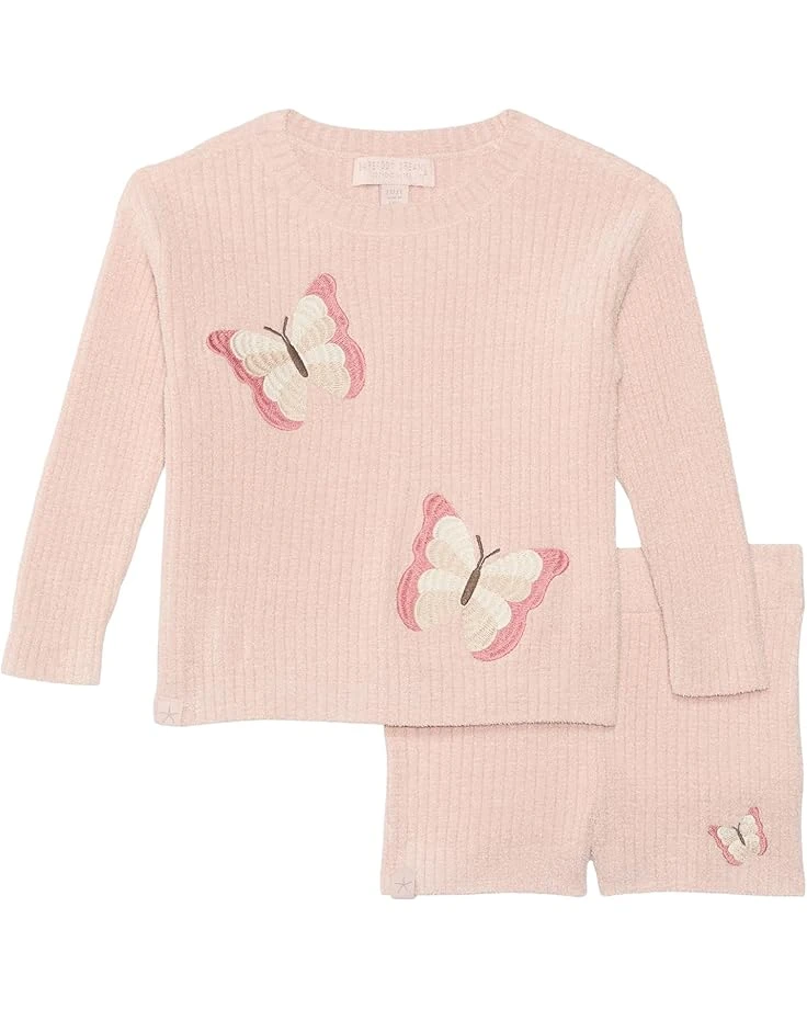 - Barefoot Dreams® Kids Cozychic Ultra Lite® Toddler Butterfly Set! Featuring a ribbed crew neck top with large embroidered butterfly artwork and an elasticated waistband short with embroidered butterfly detail. Made with our signature ultra-light fabric, your little one will stay cozy and stylish. The top comes with long sleeves and a straight.