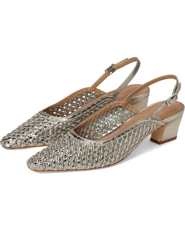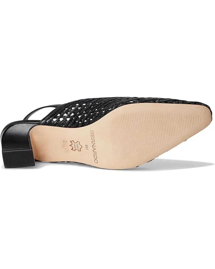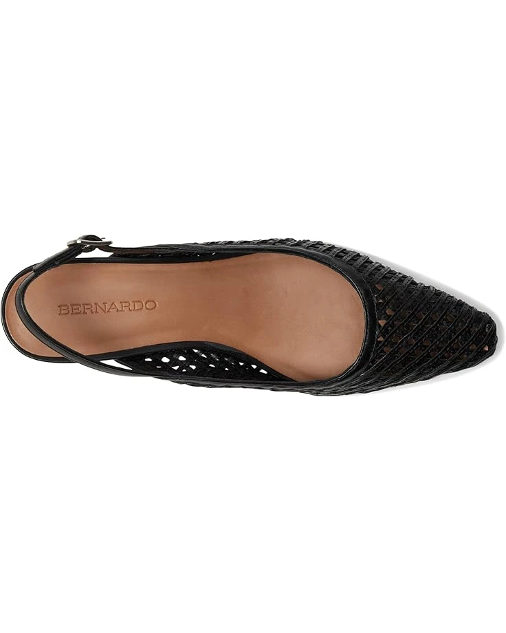 - Expand your horizons. This inventive Bernardo® Athena slingback takes a familiar design to a new place, uniting a handcrafted woven upper with modern curved lines. Adjustable buckle straps and block heels ensure a comfortable journey, no matter where you’re going.
