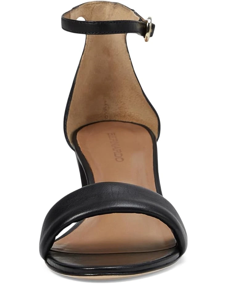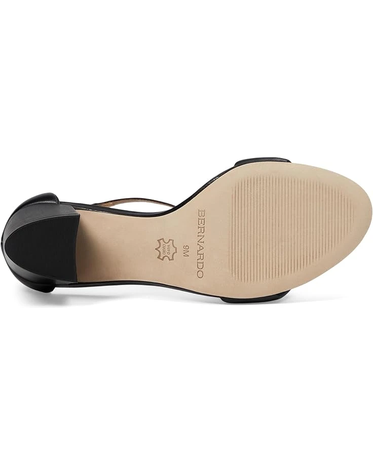 - A supportive backstrap design gives the Bernardo® Bowie a modern edge with adjustable buckle closure. The footwear features leather upper construction with block heel and open almond toe silhouette.