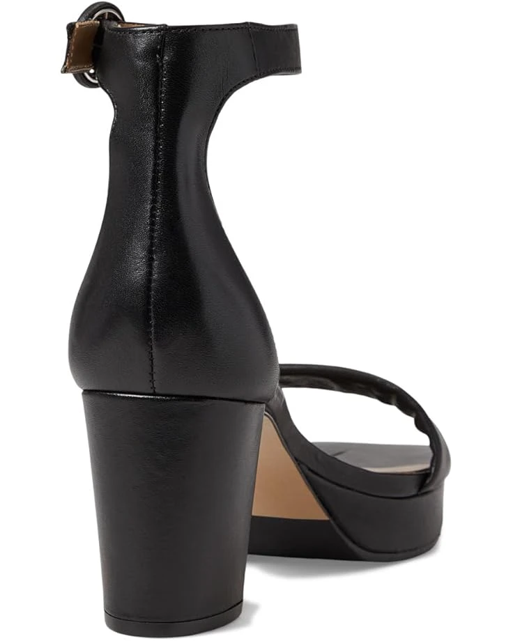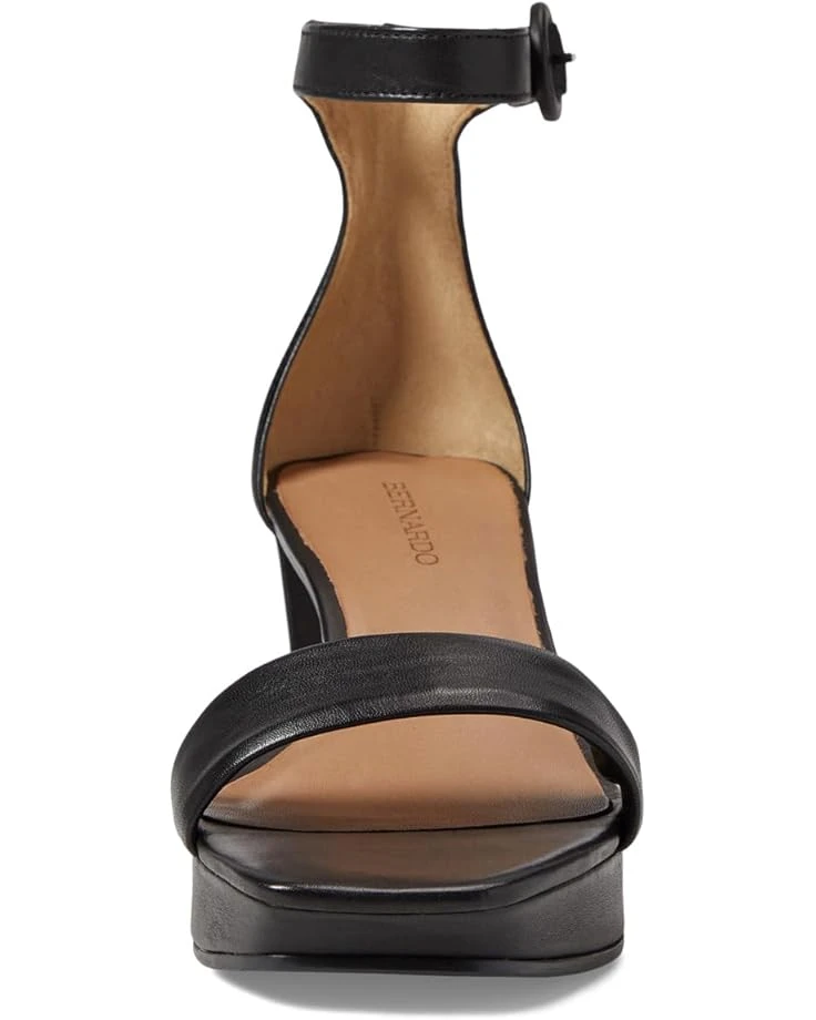 - Slay the party looks by donning the Bernardo® Carla sandals. Designed with a single strap on the upper, the stylish heels have a delicate ankle strap with buckle closure and an open, square-toe design.
