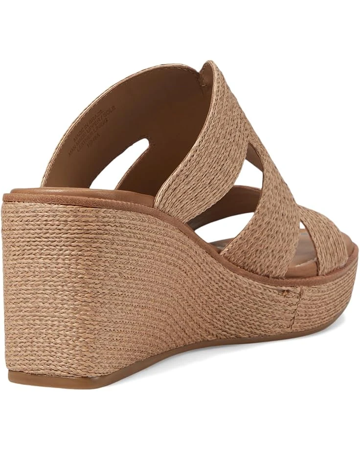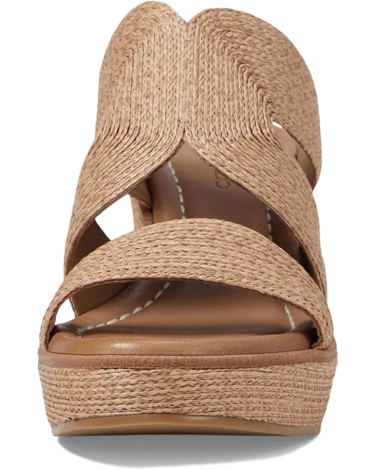 - Add value to your first impression wearing the Bernardo® Kaian. Crafted from raffia upper, leather lining and insole made of soft vegetable re-tanned leather, this pair of slip-on sandals features open round toe, strappy upper, wedge heels and classic silhouette with brand detailing on the footbed.