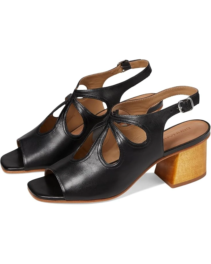 - Styled with a petal-inspired, cut-out design on the upper, the Bernardo® Lainey sandals add an elegant look to your outfits. The unique design of these sandals molds to the shape of your foot, offering long-lasting comfort. These leather sandals come with re-tanned calf leather upper that is styled with an ankle strap with a buckle closure for a secure fit. The leather insole and lining make them a durable choice. Get ready for any party or event by wearing these heeled sandals.