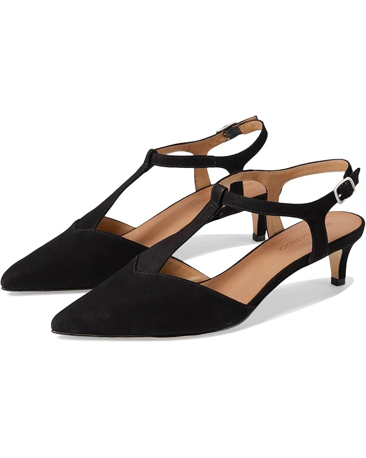- Kick it up a notch wearing the Bernardo® Malta. Crafted from leather upper and insole, this pair of heels features a t-strap, cut out detail, buckle closure, and pointed toe. This heel will bring dimension to any look.
