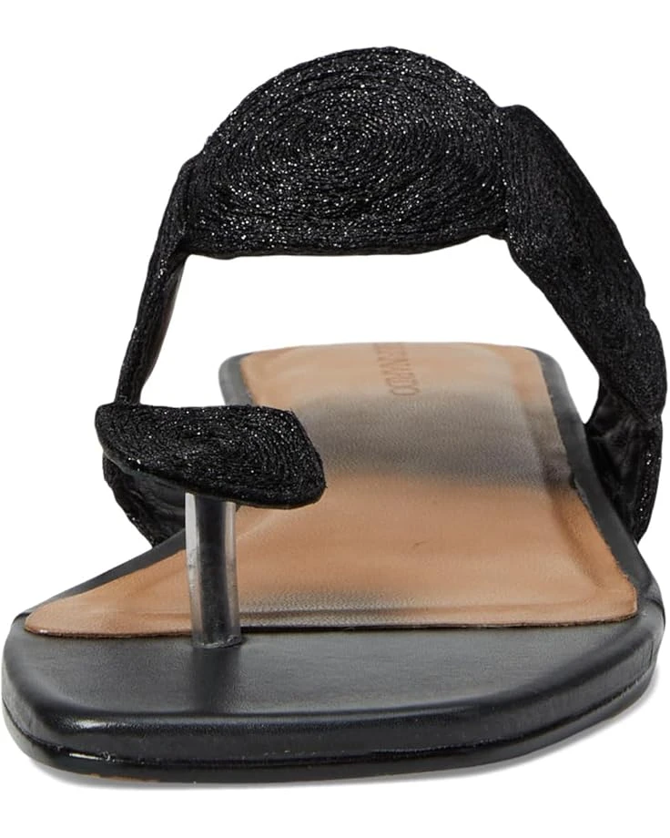 - Be the talk of your friends as you step out wearing the Bernardo® Palermo Sandals! Sculpted in a sharp open square toe silhouette, these slip-on shoes look impressive with their lurex fabric upper with a geometrically cut-out instep strap and a unique centerpiece on the toe post.