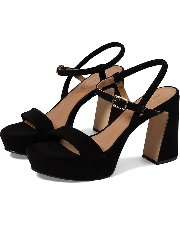 - Look classy and give a vintage touch to your look wearing the Bernardo® Ventura. Crafted from leather upper, lining and footbed, this pair of sandals features almond open toe, block heel, adjustable ankle strap buckle closure and brand detailing on the footbed.